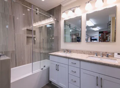 At Palazzo Kitchens and Baths, our Concord, CA showroom is the heart of our commitment to exceptional kitchen and bathroom remodeling. More than just a design-build firm, we offer a stunning materials showroom where clients can explore a wide range of premium products. From top-tier cabinetry, custom countertops, flooring, and plumbing fixtures, to our beautifully crafted kitchen and bathroom display vignettes, every item we offer is carefully selected for quality and design.